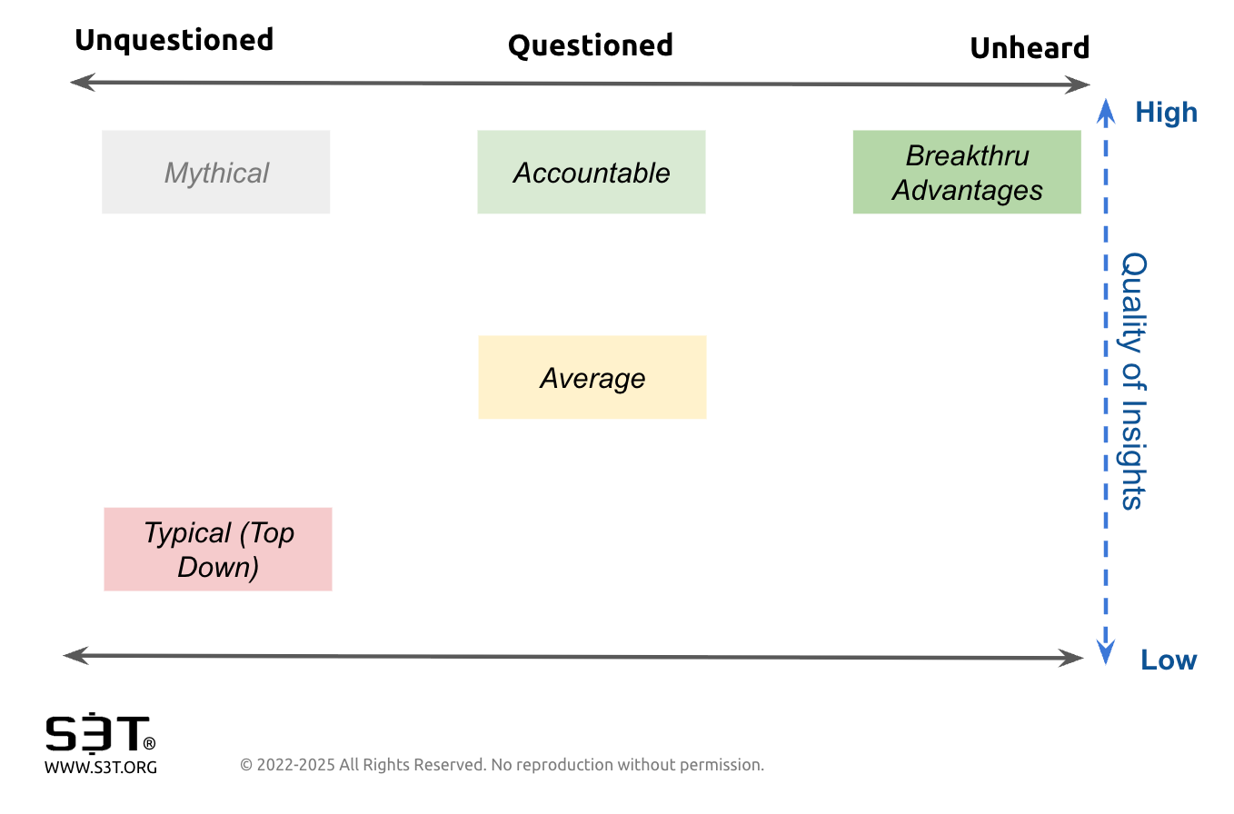 - 🧊 The Unquestioned may be trusted but can offer low-quality ideas. 🧐 The Questioned face constant scrutiny, while 🫥 The Unheard—often closest to the problem—offer high-impact insights that are routinely overlooked.