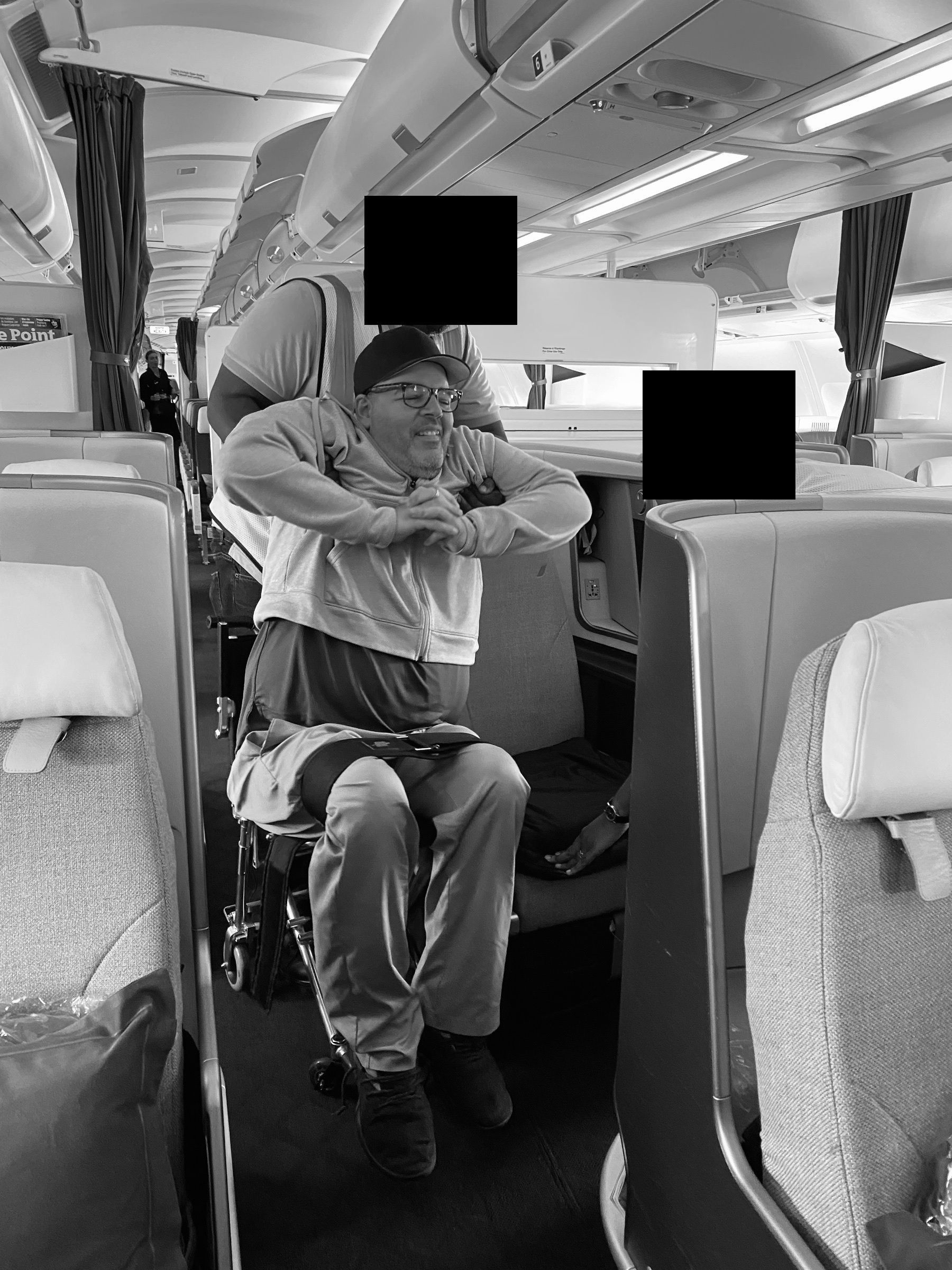RP: So very seasoned traveler. But you mentioned that when you travel you depend on your wheelchair. (Quick note for listeners: You frequently see people being pushed around in wheelchairs in the airports. But you've probably never seen a person on a plane sitting in their own wheelchair. The airlines don't allow it.) So Dan when you fly, you have to be removed from your wheelchair...what is that like?