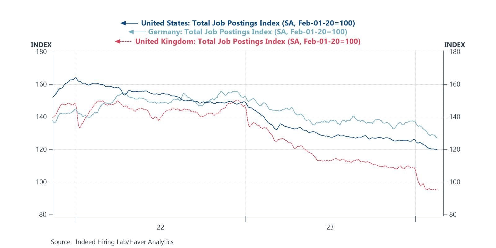 In the US more strong economic numbers are expected next week, but as noted by Fed Vice Chair Jefferson some indicators suggest slower growth and spending in 2024. Job openings slid downward in January: